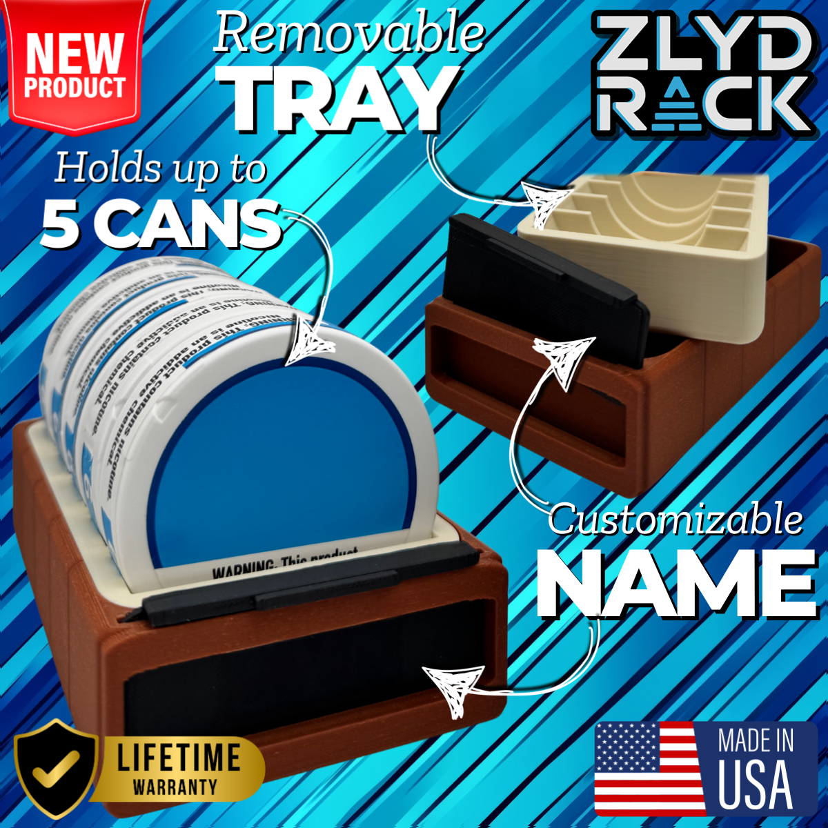 Tired of dip cans rolling around everywhere? The ultimate storage solution that keeps your cans organized and eliminates the mess of scattered tins. Designed for durability and convenience, this Made in the USA rack features a removable tray for easy access and cleaning, along with a customizable nameplate to make it your own. Whether in your fridge, truck, or man cave, this rack ensures your cans stay neatly stacked and always within reach.